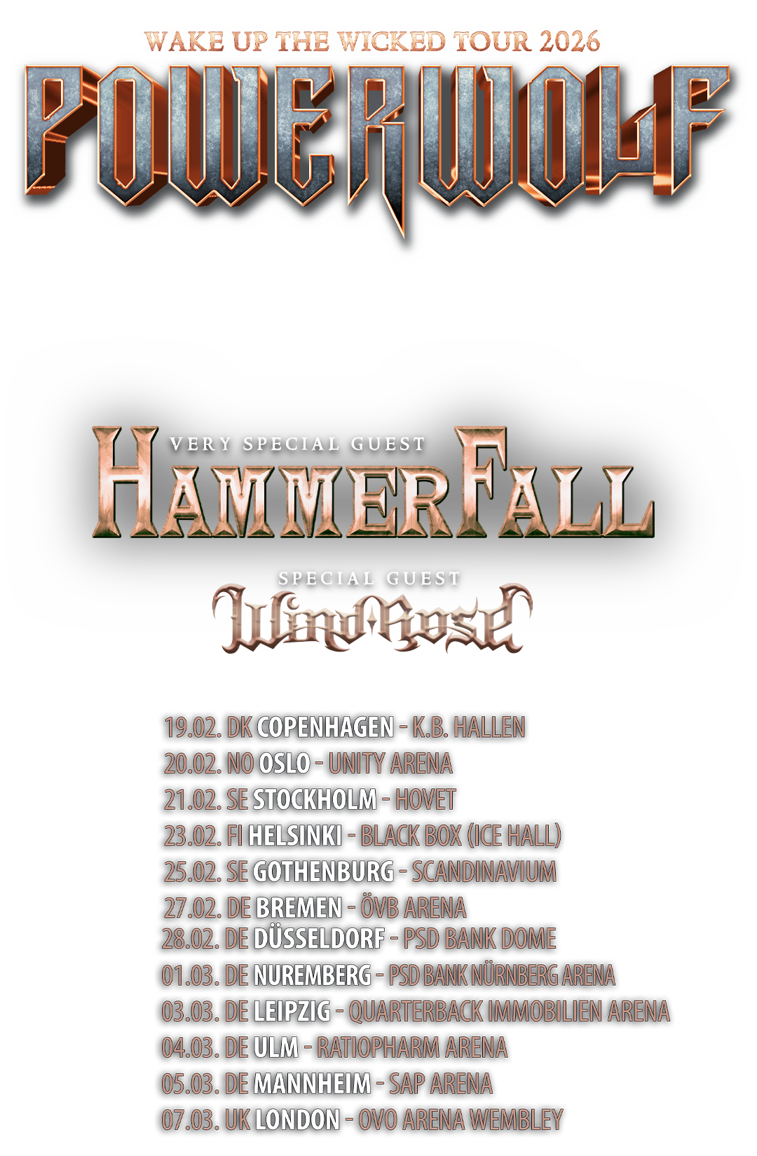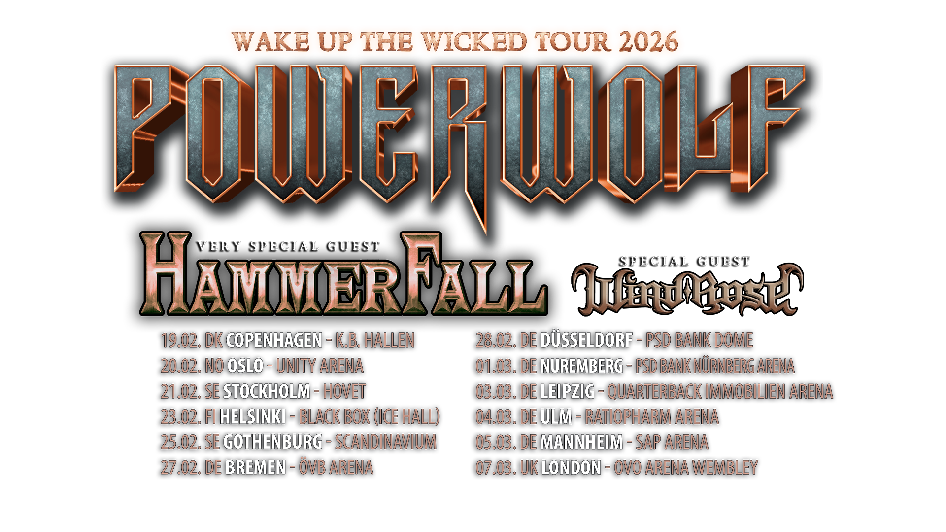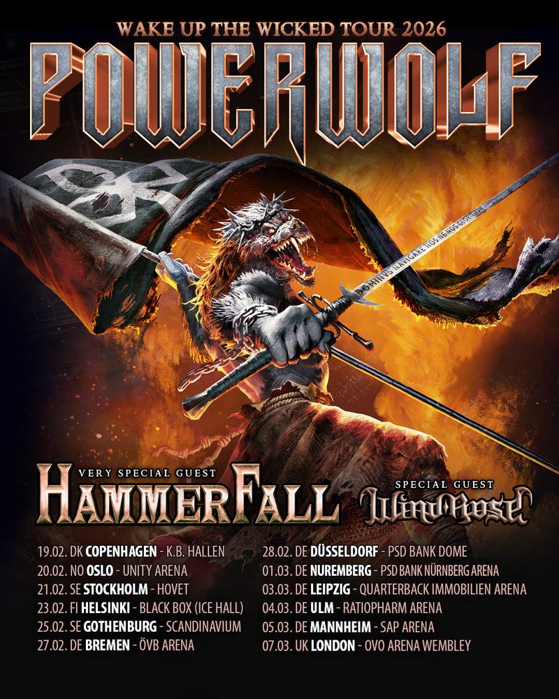 POWERWOLF - Wake Up The Wicked Tour 2026Hier noch mal alle Deutschland-Daten für unsere kommende Wake Up The Wicked Tour mit Hammerfall und Wind Rose auf einen Blick. Es gibt nicht mehr viele Tickets und einige Kategorien sind bereits ausverkauft, also wartet nicht mehr lange! Wir freuen Read More